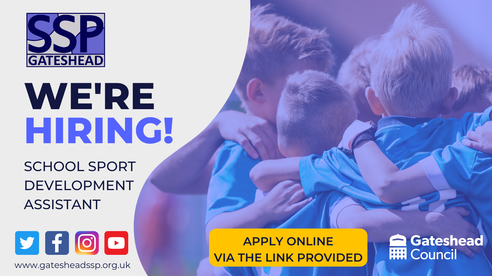 We are looking to recruit a SCHOOL SPORT DEVELOPMENT ASSISTANT to join the team at Gateshead School Sport Partnership.