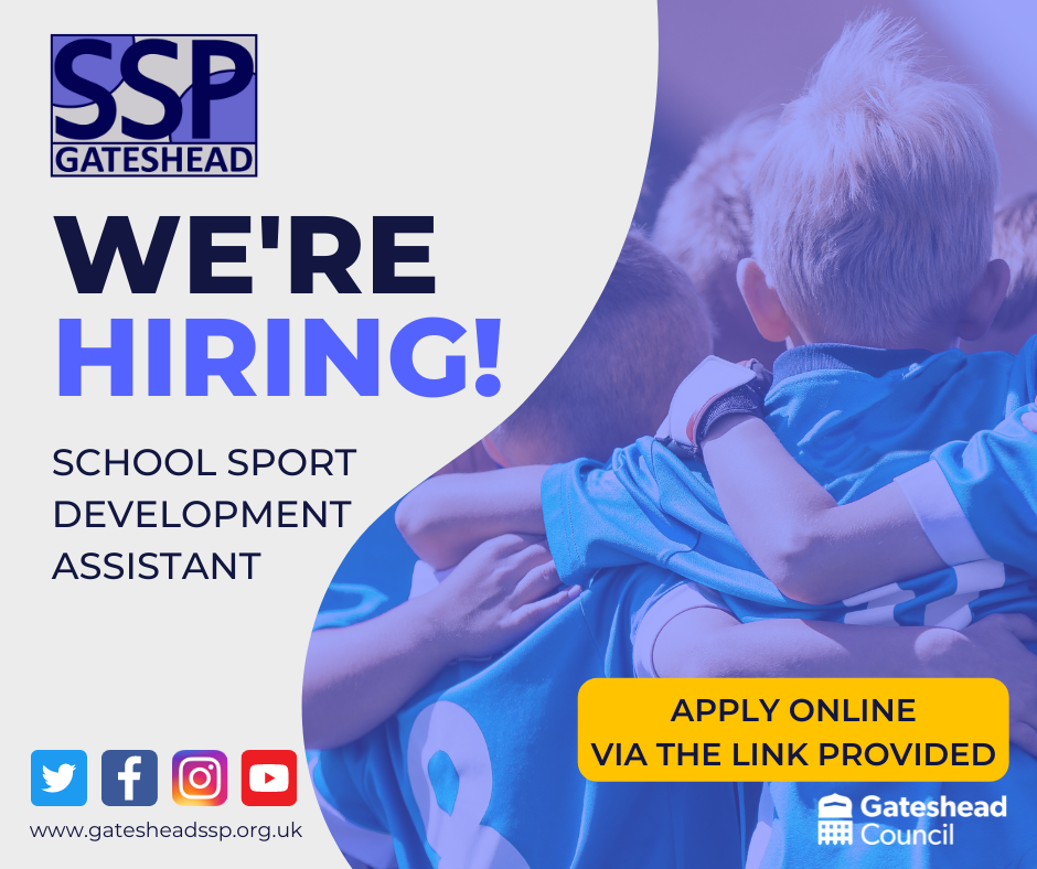 We are looking to recruit a SCHOOL SPORT DEVELOPMENT ASSISTANT to join the team at Gateshead School Sport Partnership.